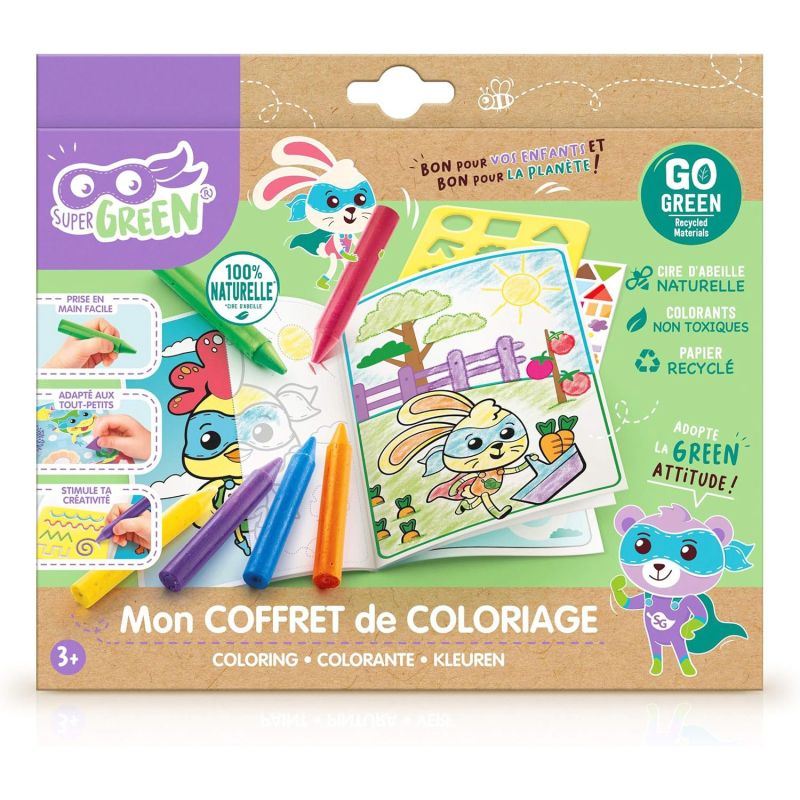Coffret de coloriage offrant des heures de jeux en stimulant la créativité des enfants et en leur proposant des activités funs & ludiques. Les crayons sont fabriqués à partir de cire d'abeille naturelle pour offrir la meilleure qualité de produits à nos enfants.