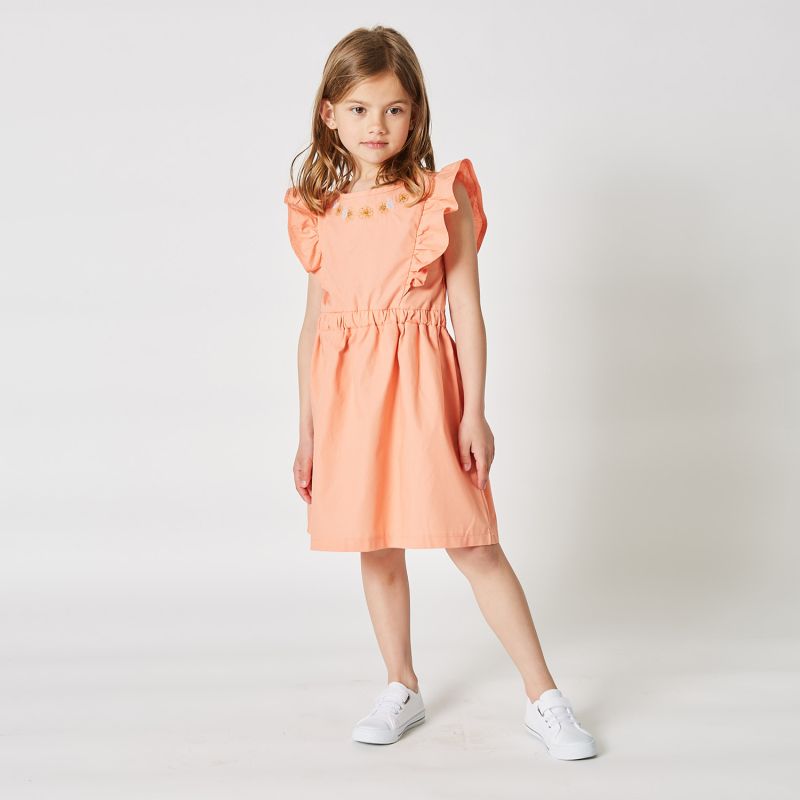 Ajoutez une touche de chic et de sophistication à la garde-robe de votre petite fille avec notre robe chic en popeline de couleur corail. Fabriquée à partir de 100% coton de haute qualité, cette robe offre un confort optimal tout en ajoutant une élégance subtile à son look.