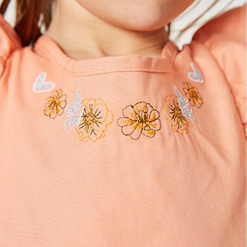 Le design de cette robe met en avant une coupe classique et intemporelle, idéale pour les occasions spéciales ou les moments où votre enfant veut se sentir élégante. La couleur corail apporte une note de douceur et de féminité à cette robe, ajoutant une touche de fraîcheur à son allure.