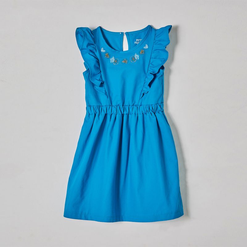 Le design de cette robe met en avant une coupe classique et intemporelle, parfaite pour les occasions spéciales ou lorsque votre enfant souhaite se sentir élégante. La couleur bleu océan apporte une note de fraîcheur et de charme à cette robe, ajoutant une touche captivante à son allure.