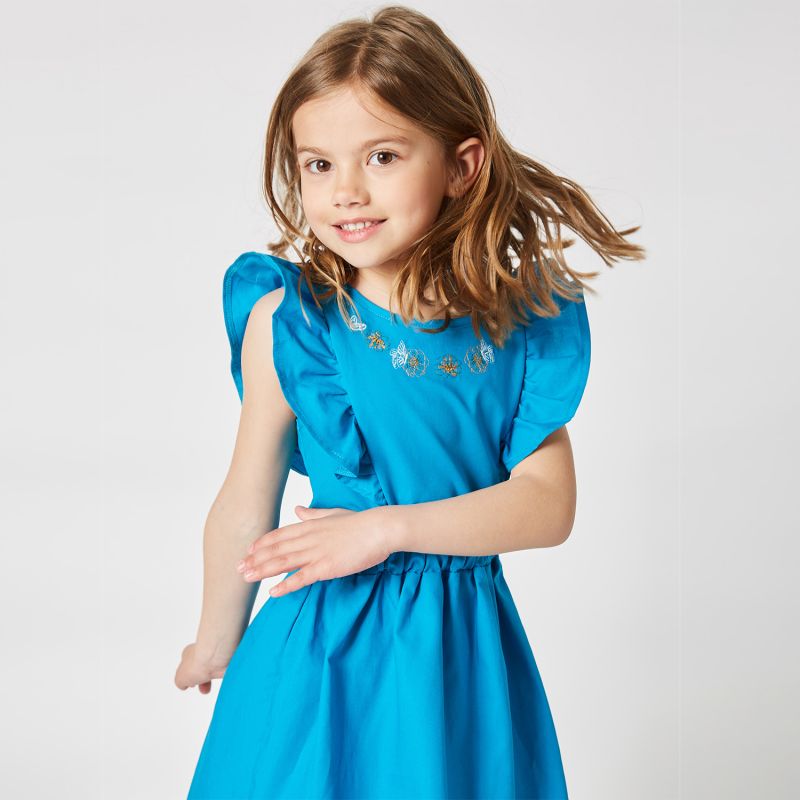 Confectionnée avec soin, cette robe chic en popeline bleu océan en coton offre une qualité exceptionnelle et une durabilité. Elle est également facile à entretenir, offrant une solution pratique pour les parents occupés.