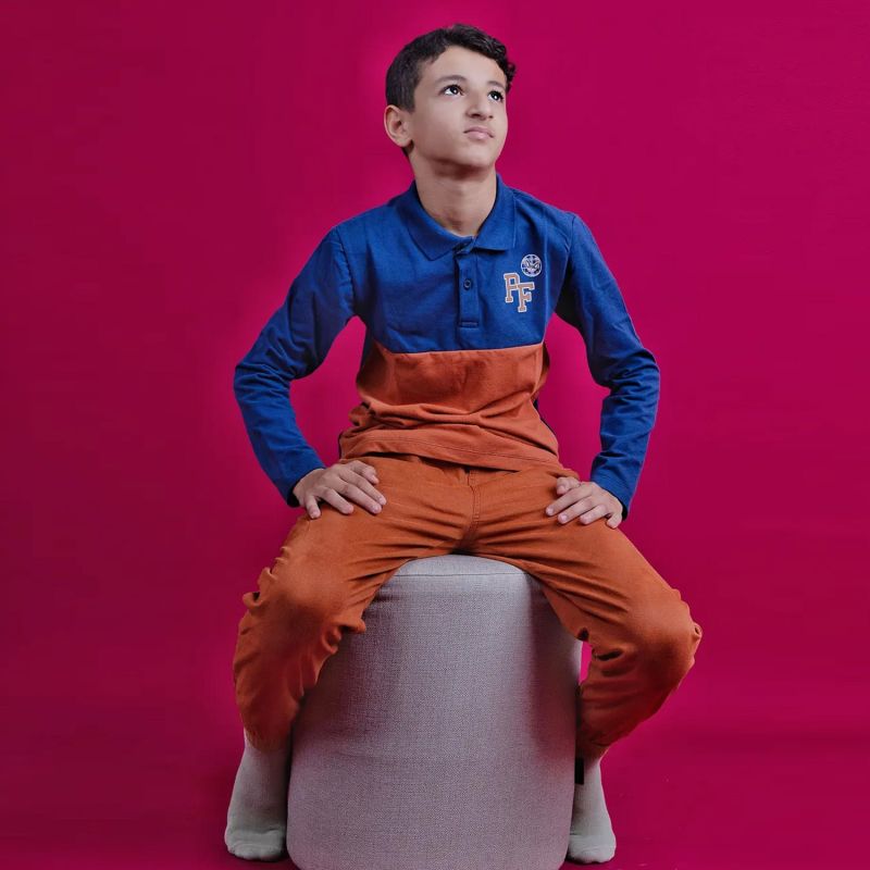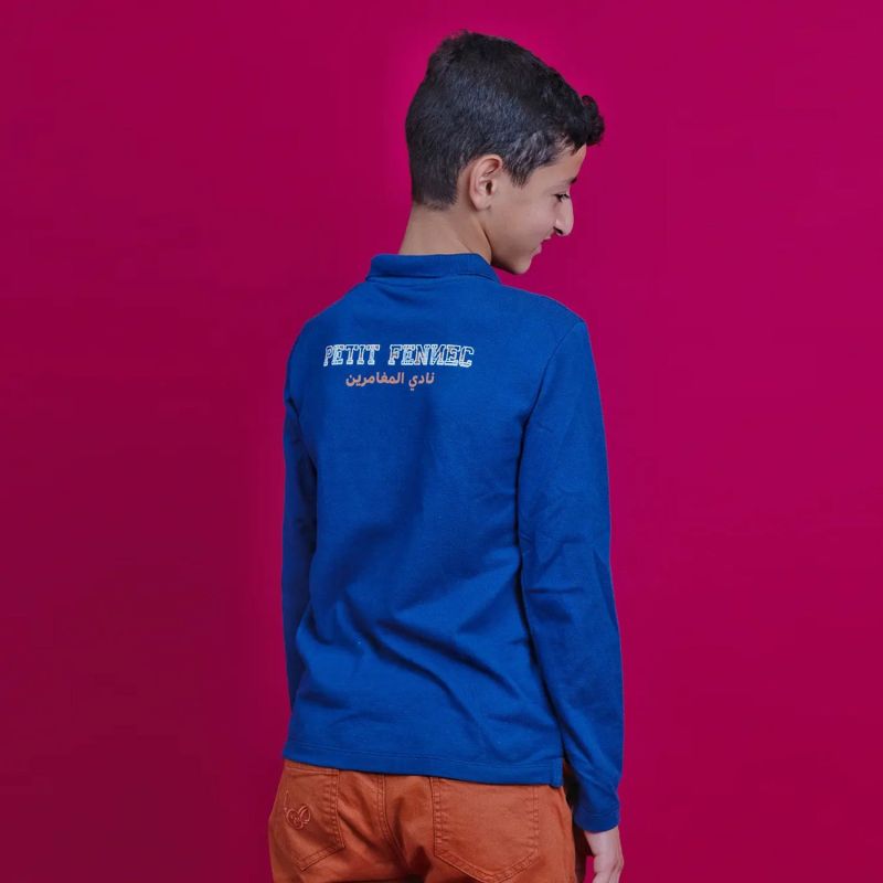 Découvrez notre Polo Garçon "Petit Fennec Explorer", disponible en Bleu/Marron et Kaki/Orange. Ce polo à manches longues met en avant un écusson Petit Fennec tendance à l'avant et une inscription "Petit Fennec, le club des aventuriers" au dos. Conçu pour toutes les occasions, il associe style et confort avec sa confection en piqué de coton 100%. Fabriqué avec soin en Algérie, ce polo allie élégance et robustesse. Parfait avec un jean ou un pantalon Petit Fennec pour un look d'aventurier sophistiqué.
