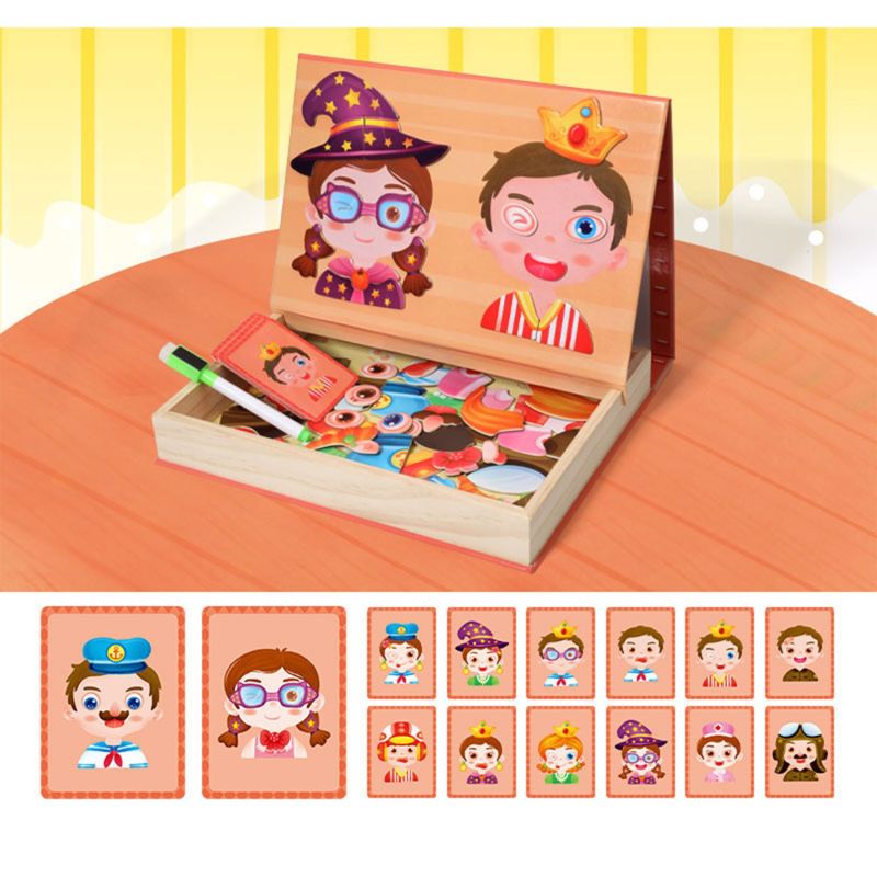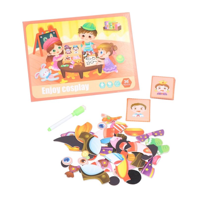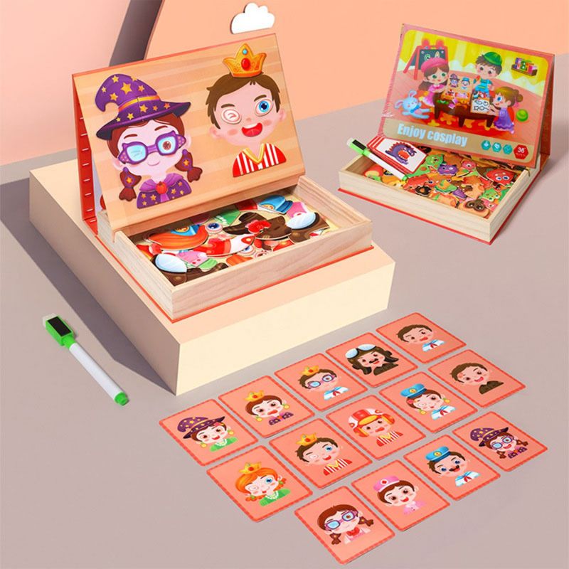 Jeu éducatif en bois et carton, avec pièces de puzzle magnétiques, thème Costumes - jeu de rôle.