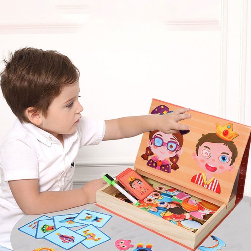 La surface magnétique est illustrée avec le thème du livre, avec les pièces magnétiques différentes figures seront formées, selon les modèles.