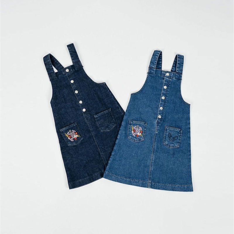 Robe salopette fille en denim marine foncé (Enzyme Wash)