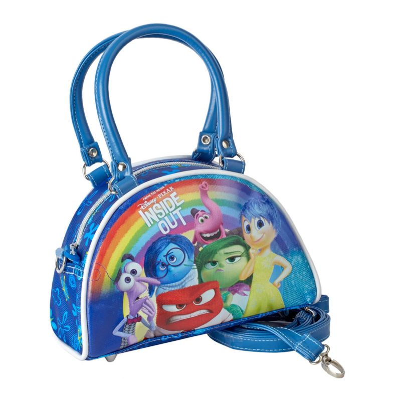 Les personnages de Vice-Versa ornent ce majestueux modèle bleu, orné d'un arc-en-ciel sur le côté gauche. Un sac bowling pour enfant avec un compartiment unique et une doublure intérieure. De courtes anses supérieures pour un porté comme une maman, et une bandoulière amovible et réglable de 120 cm.