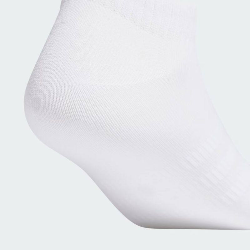 Ces socquettes adidas sont douces sur la peau. Conçues dans un mélange de coton léger et de polyester, elles épousent parfaitement la voûte plantaire et sont dotées de coutures liées à l'avant-pied pour éviter les frottements. Ce produit est composé à 50 % minimum d'un mélange de matériaux recyclés et renouvelables.