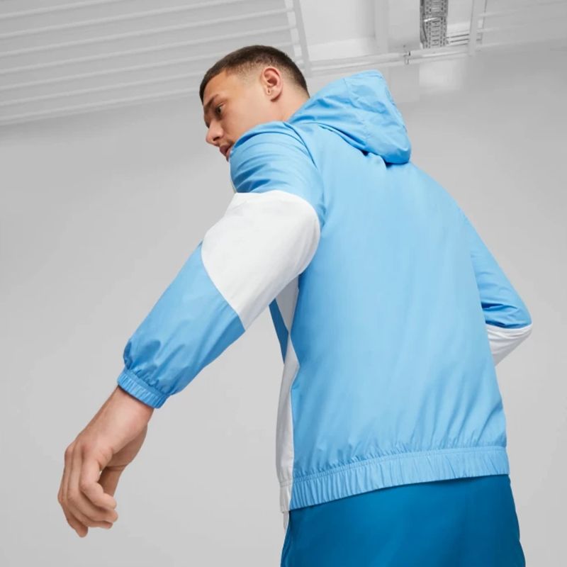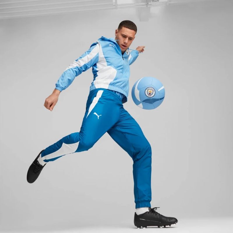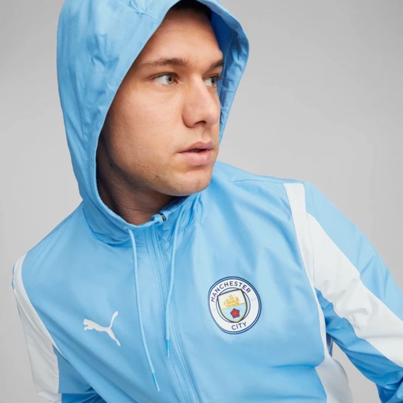 Le survêtement MCFC Pré-match Team L  est un ensemble officiel conçu pour les vrais supporters de Manchester City. Composé d'une veste tissée zippée et d’un pantalon assorti, il allie style moderne, confort sportif et fierté du club.