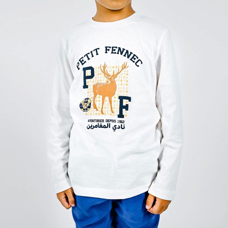 Découvrez notre T-shirt à manche longue "Cerf de Bejaia", disponible en Blanc Cassé ou en Orange. Il est orné d’un cerf majestueux, emblème de la forêt de Bejaia, et présente des motifs locaux qui rappellent la richesse du patrimoine local. Fièrement fabriqué en Algérie en 100% coton pour un confort optimal, il est parfait en toutes occasions avec ça touche nature et aventure. Associez-le à un jean ou un pantalon Petit Fennec pour un look d'aventurier.